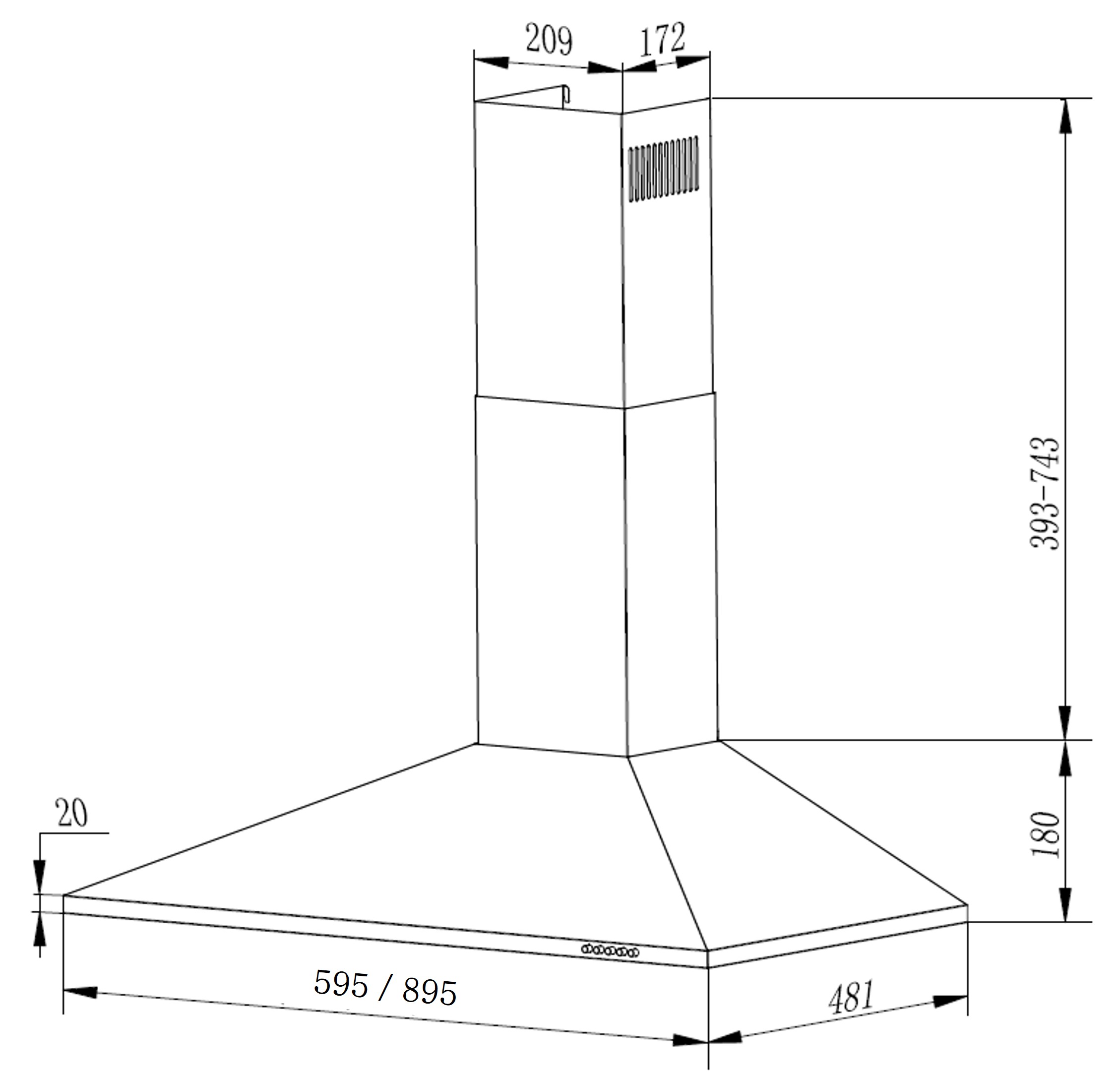 Instalación: PARED Velocidades: 3 + INTENSIVA -Boost- Comandos: PULSANTES Iluminación: 2 LED S20003K Absorción: 740 (m³h) Filtro de carbón: INCLUÌDO Acabado: NEGRO MATE Diámetro: 42 cm -